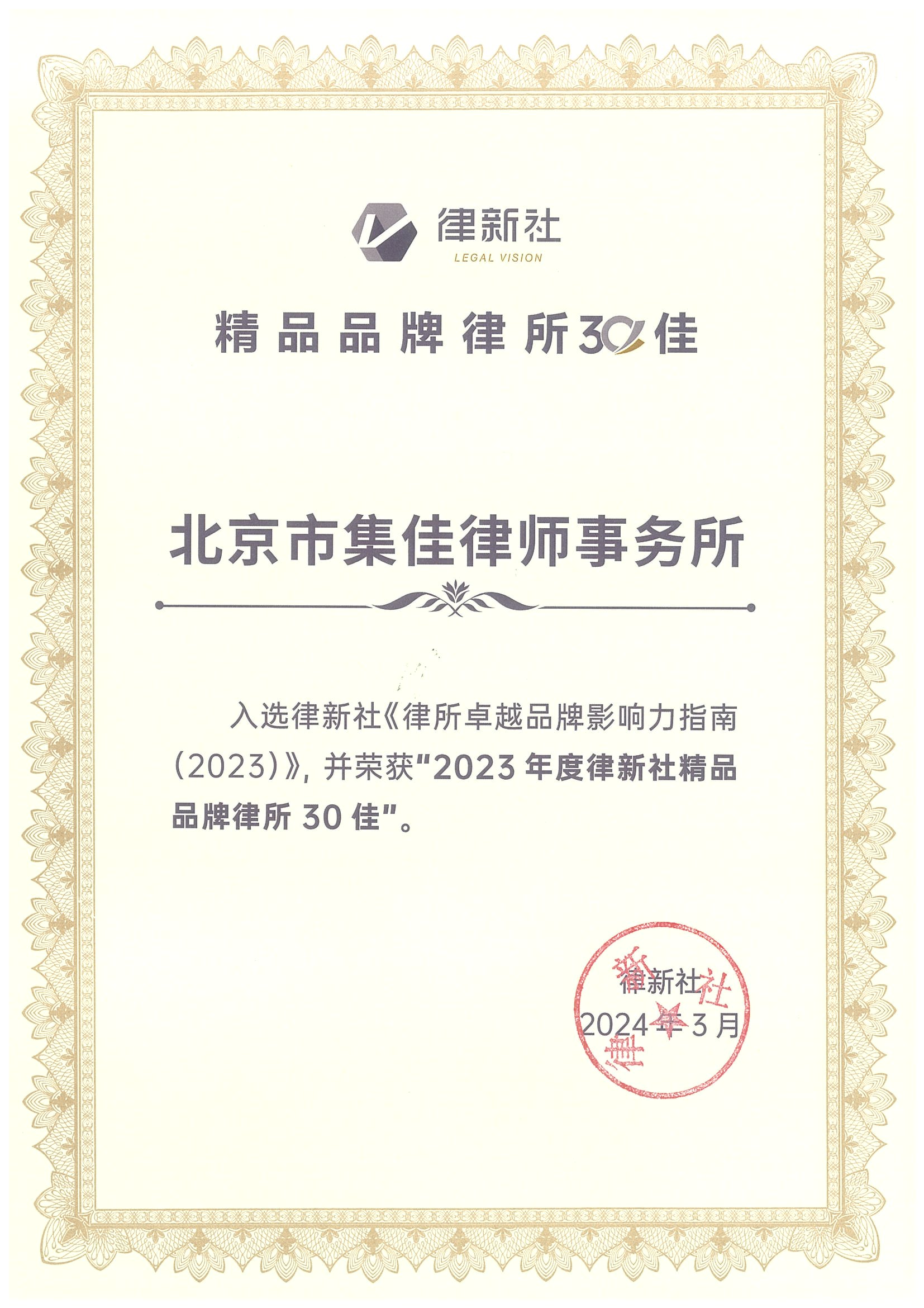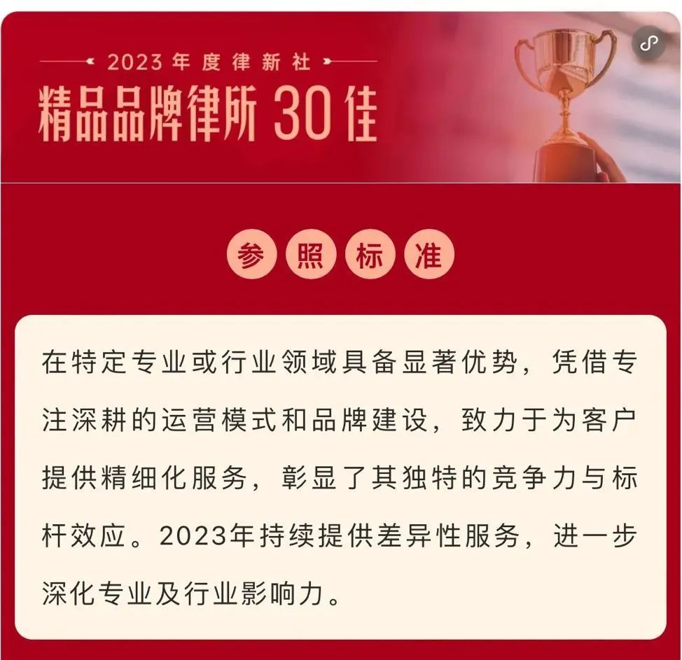 捷报比分入选 “2023年度律新社精品品牌律所30佳”