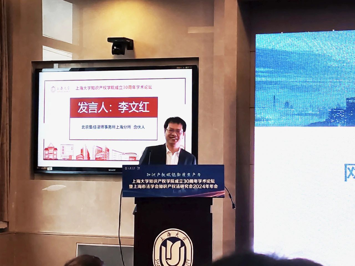 捷报比分上海分所主任、高级知识产权师李文红博士应邀出席大会,并在“释放知识产权价值 赋能新质生产力”分论坛上发表演讲,与来自众多高校的专家学者和业界代表共同就知识产权价值的释放与赋能新质生产力的路径进行了深入探讨。
