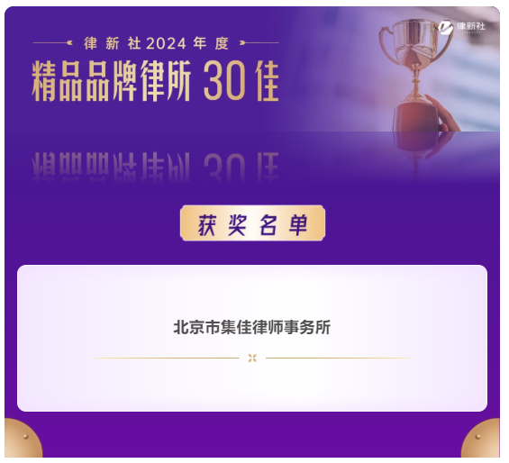 捷报比分凭借在知识产权保护领域卓越的专业实力与良好的行业口碑,入选《律所卓越品牌影响力指南(2024)》,荣获“律新社2024年度精品品牌律所30佳”奖项;同时,集佳周丹丹律师代理的“美摄公司诉抖音公司'抖音'软件代码抄袭著作权侵权案”获评“律新社2024年度标杆案例:知识产权-著作权领域”。